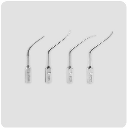 Perio-spissene er utviklet for omfattende subgingival periodontal behandling. Sortimentet inkluderer både rette og bøyde spisser for effektiv debridement og rengjøring av rotoverflaten.
