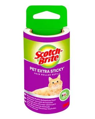 Scotch-Brite™ Ekstra Sticky* hårfjerner Refill er en rask og enkel måte å holde klær og tekstiler pene, rene og fri for dyrehår på. Den er spesielt designet for fjerning av hår fra kjæledyr, og er den eneste lo- og hårfjerner refill som er lagd med høyteknologisk og unikt Scotch® Brand lim for optimal klebeevne uten å skade stoffet. Refillen skyves på det opprinnelige ergonomiske håndtaket for lett rulling og behagelig bruk. Den rives rett av helt ned til det siste arket, slik at det blir mindre avfall.