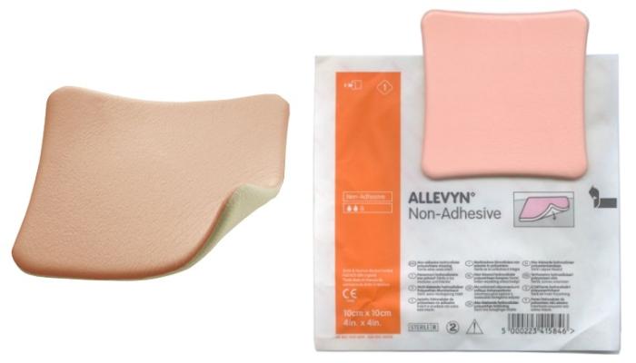 Allevyn Non-Adhesive kompress er en høyabsorberende cellulær skumbandasje laget for moderat til kraftig væskende sår. Bandasjen har en trelags konstruksjon som gir en gunstig sårtilheling gjennom en aktiv væskehåndtering. Ikke heftende sårkontaktlag. Optimalisert bandasjeutforming for økt pasientkomfort. Vann- og bakterietett.