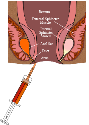 - 18G (1,2mm) vinklet butt plastspiss for enkel innføring i analkjertelåpningen.
