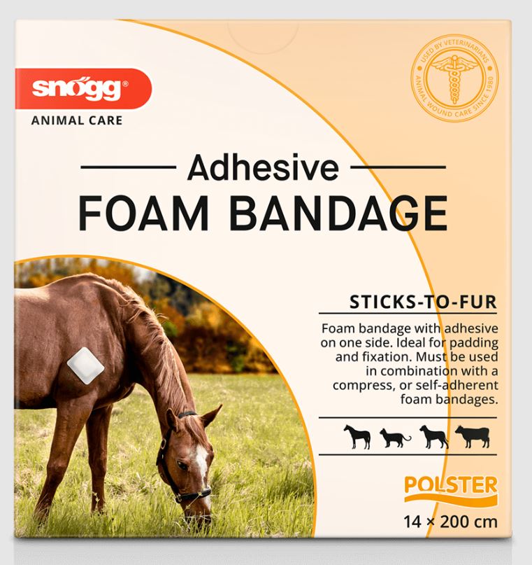Adhesive Foam Bandage er en elastisk skumbandasje med god kleb til hud og pels. Bandasjen har lim på den ene siden og er ideel for polstring og fiksering eller feste av enheter for overvåkning som f.eks EKG elektroder. Man kan enkelt lage en sårbandasje ved å kombinere Adhesive Foam bandage med en kompress eller med Thick Foam Bandage. Bruk Snøgg Removal Wipes eller hudvennlig olje for å fjerne limrester. Lateksfri.