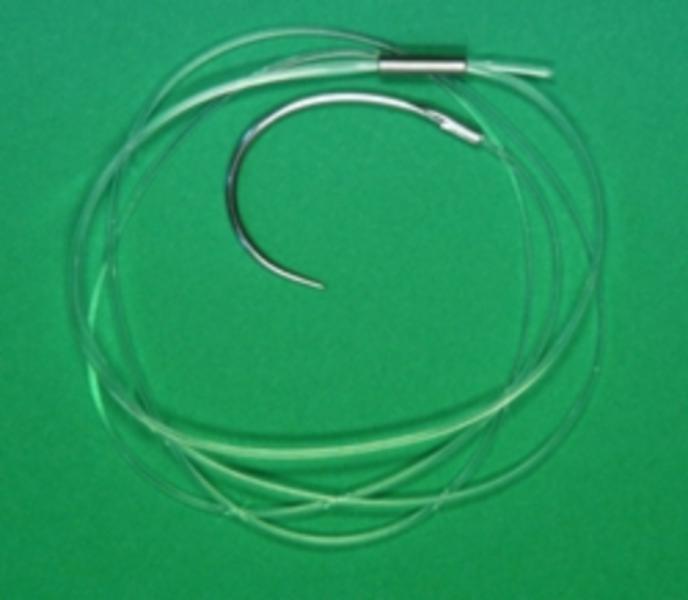 50lb nylon line x 500mm on swaged-on v. small fabella needle + 10mm crimp (sterile).