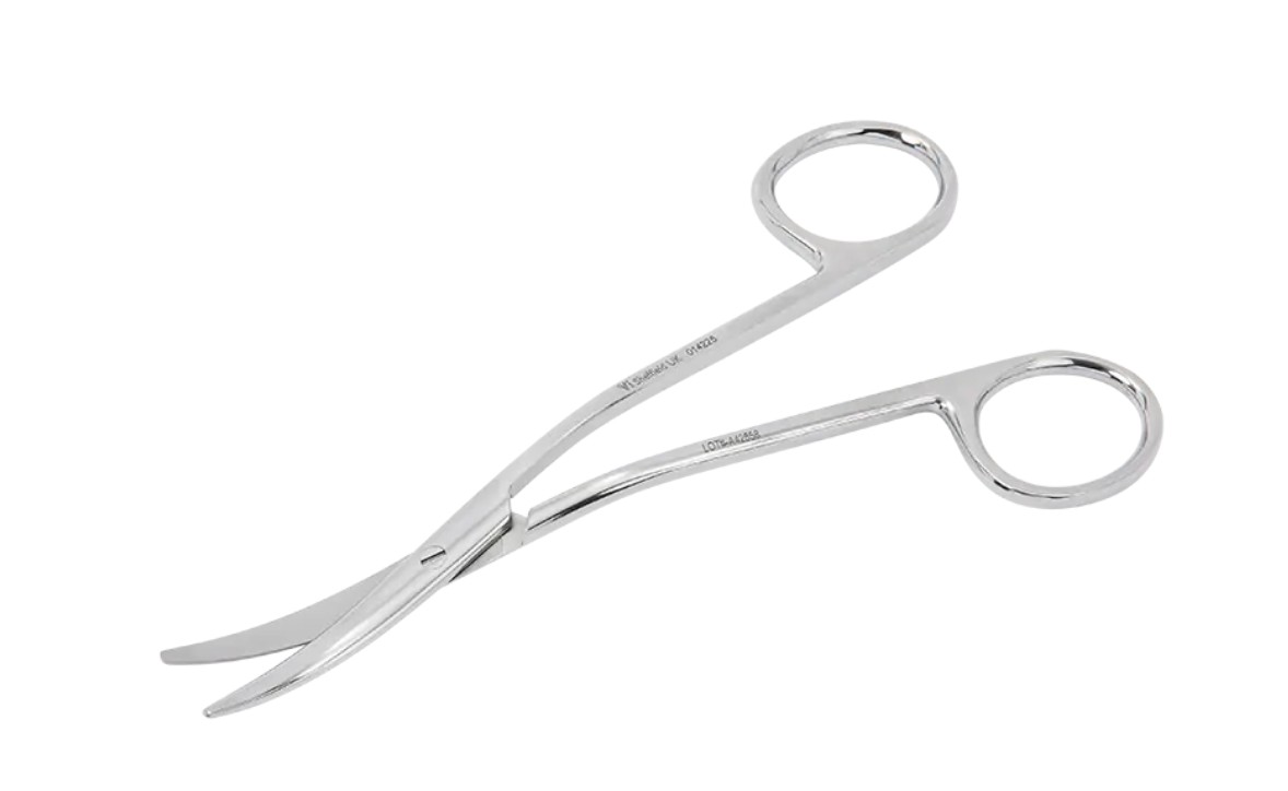 Standard curved surgical scissors do not match the radius of the eye of dogs and cats.