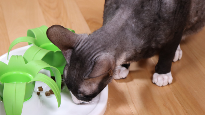 Gjør at katten ikke får spist så fort og forhindrer flatulens,