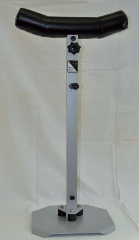 Oscillating system with rubber spring. While the horse is moving, the mast of our head-stand can easily oscillate without getting off the ground, and hurting the patient and the practitioner. This oscillation offers a complete freedom in the move for the horse without disturbing the practitioner during the dental cares.