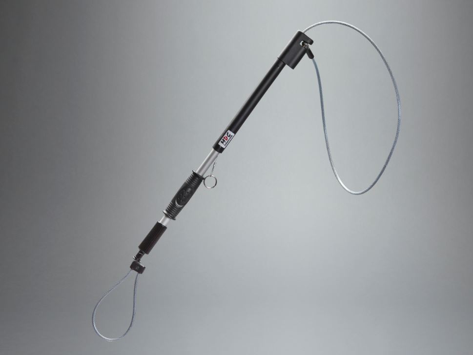 A slip noose cable attached to a sturdy pole for animal handling professionals to safely retract, restrain and