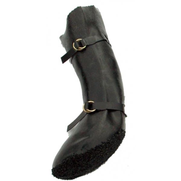 Sokken er laget av et tynt bommulstoff som er dyppet i flytende gummi og deretter lagt et lag med gummi biter på sålen.