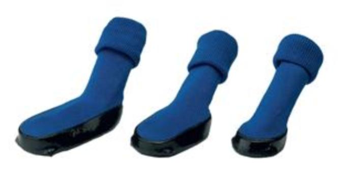 Hundesokk av ribbestrikket bomull med slitesterk og vanntett såle.