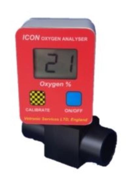 ICON oksygen analyseenhet er en batteridrevet enhet utviklet for å overvåke oksygennivået under anestesi