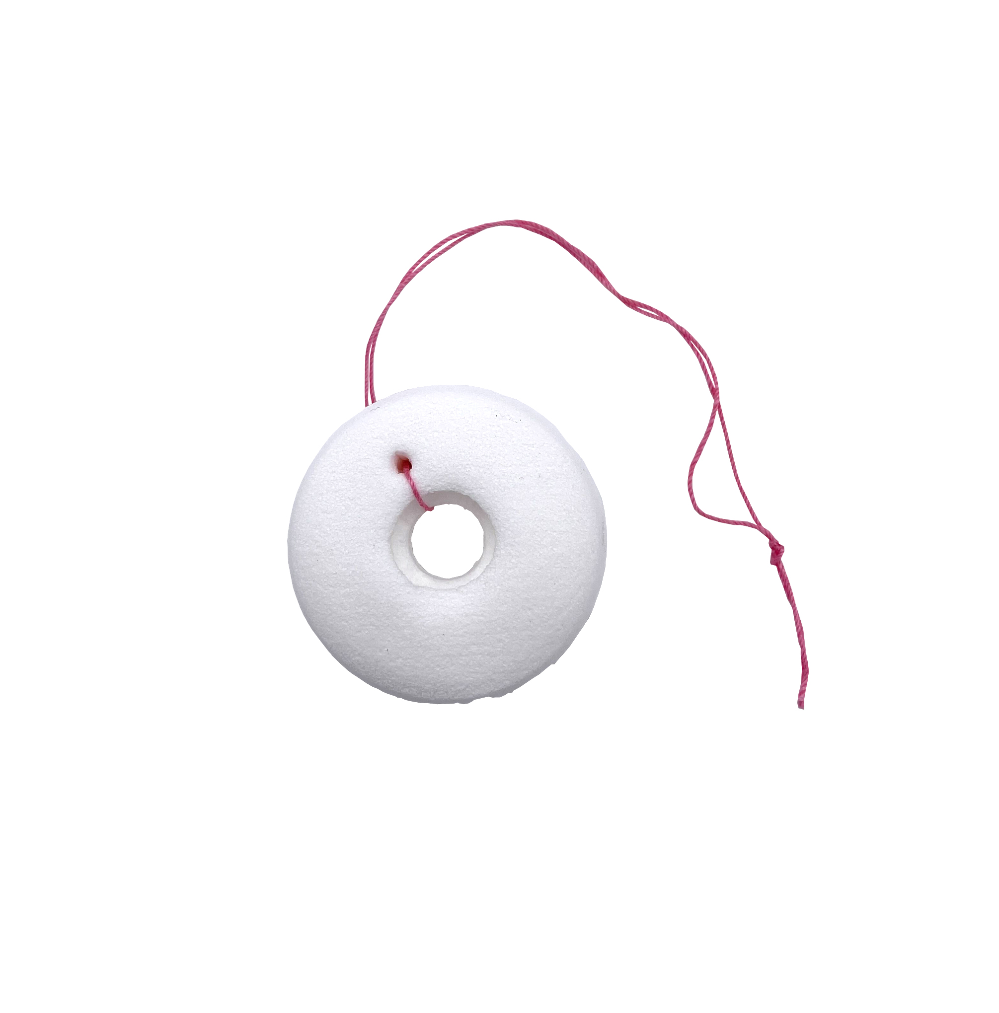 Aspir-Guard is a dehydrated PVA donut shaped product. When rehydrated, it has a soft gentle sponge like feel. It is placed over the distal end of the ET tube prior to intubation just outside the epiglottis. Attached strings are used to tie the Aspir-Guard to the roll gauze or old IV tubing used to secure the ET tube to the patient.