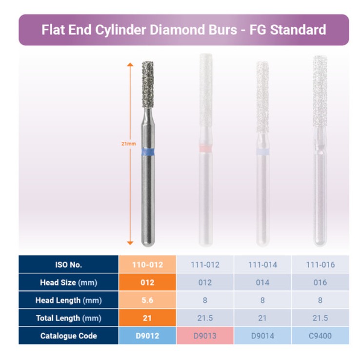 Hjem / Dental / Borr / High speed FG 19mm standard / iM3 Borr, High Speed, FG, Diam. flat end cyl. 012 Med Grit