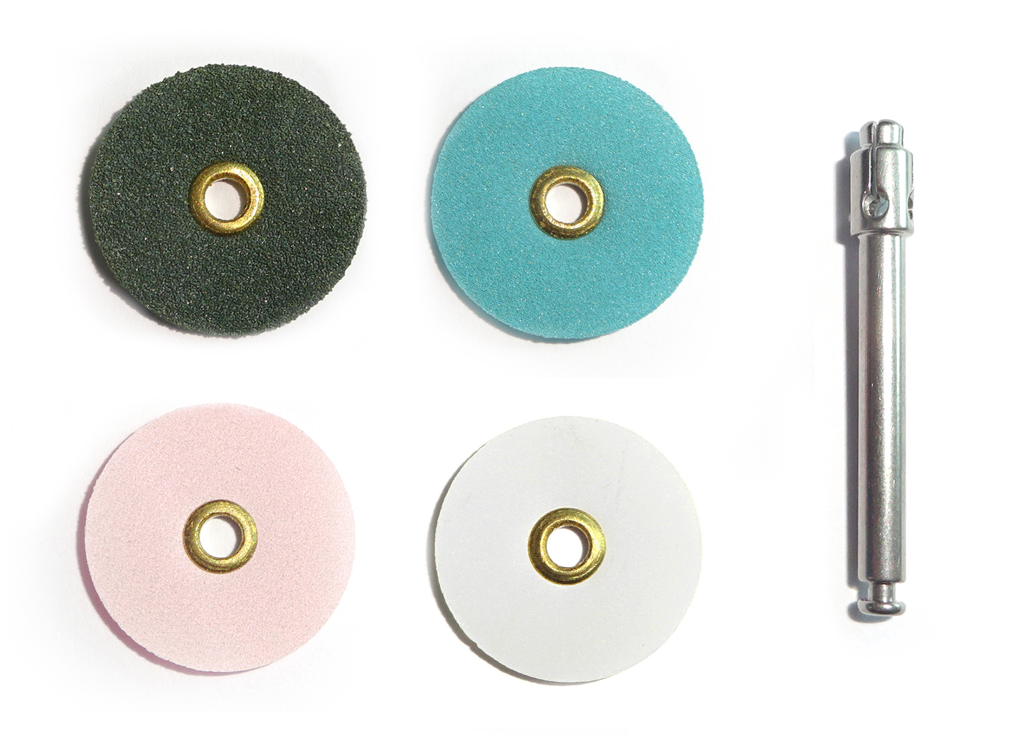 Used to polish composite restorations or when performing odontoplasty. Set of 100, 25 each of very coarse, coarse, medium and fine discs. Complete with RA mandrel.