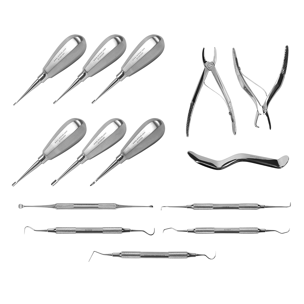 iM3 14 Piece Dental Instrument Set with stubby handle winged elevators was designed to take the guess work out of choosing the correct dental instrument. The complete set includes the instruments to examine, clean and extract teeth in both dogs and cats. Made from high quality French and Japanese S/S.