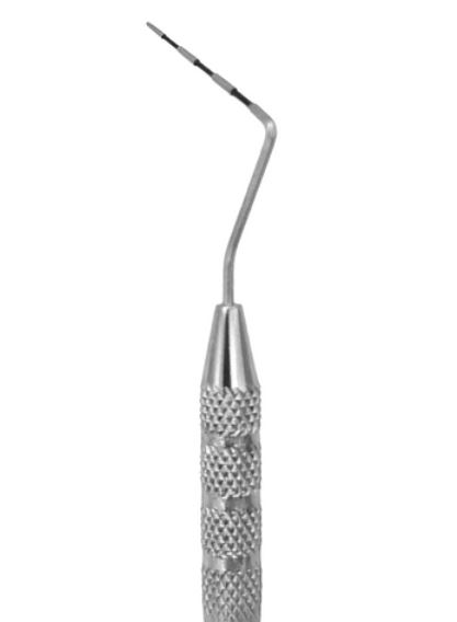 The long 20 mm tip is ideal for periodontal probing in medium and large dogs. The etched markings will not fade even after many autoclave cycles. The other end of the probe has a shepherd hook explorer to detect tooth defects both supra and subgingivally.