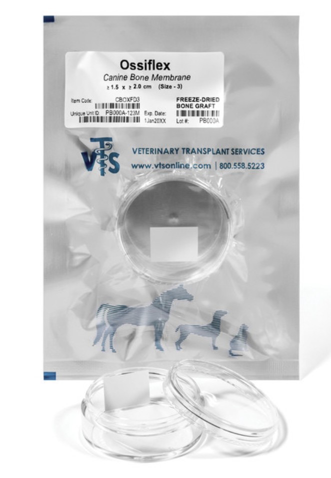 *Historically, most Ossiflex™ has been canine-sourced. Due to a shortage of suitable canine donors that would allow the processing of Ossiflex™ graft, our most recent batches may be canine or they may be equine sourced. For more information on the use of equine Ossiflex™ across a variety of species as xenografts, please see the "Cross Species Use" information below.