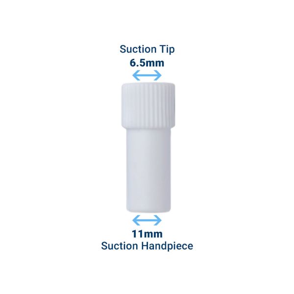 Adaptor for 11 mm suction handpieces to fit 6.5 mm suction tips.