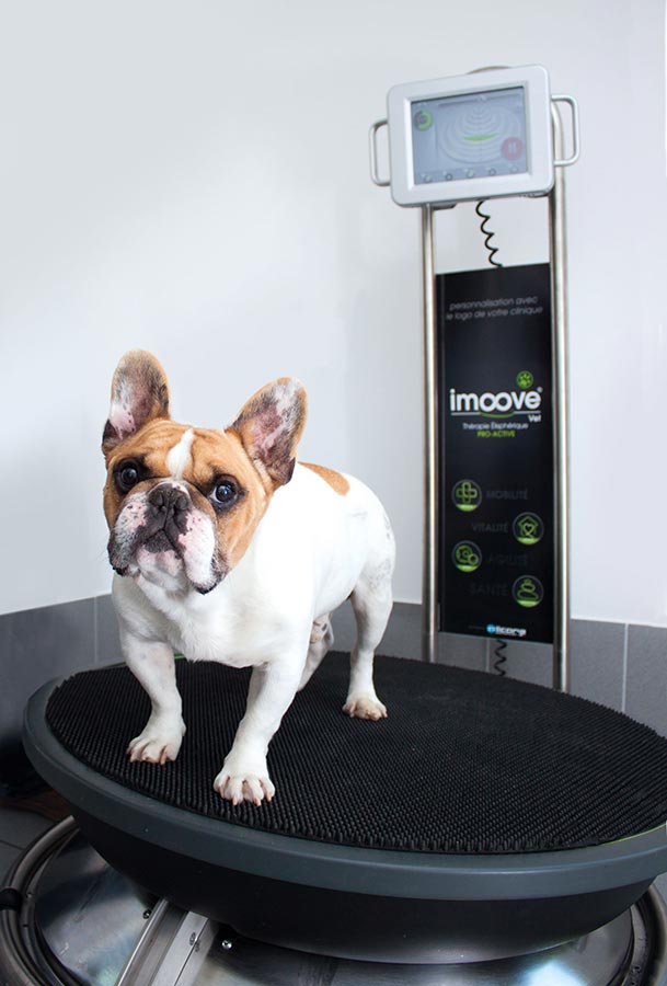 Thanks to its nervous system, the animal's body reacts to destabilization, however small. The imoove®-vet veterinary physiotherapy platform shifts its center of gravity and forces it to compensate so as not to fall.