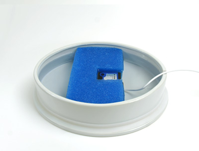 For bruk, plasser filtersvampen i midten av Lucky-Kitty-kattfontenen, og fest deretter pumpen til hakket i filteret.