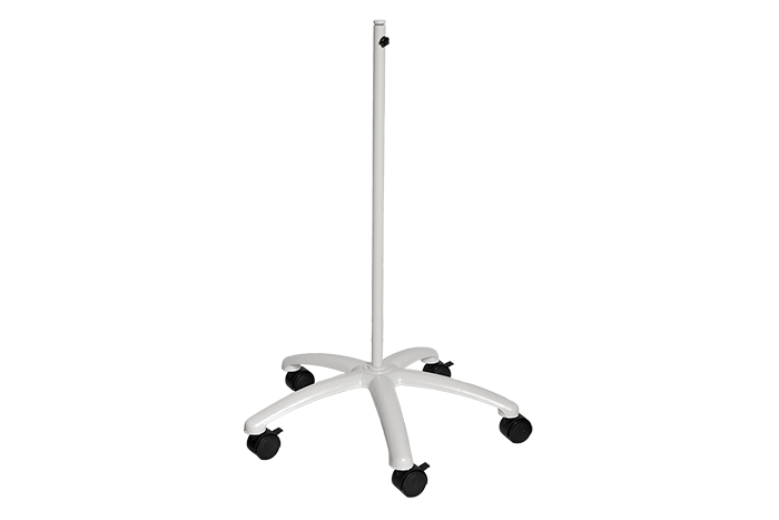 Gulvstativ for undersøkelseslamper og lupelamper. Stjerneformet fot med hjulbremser. For lupelamper anbefales en ekstra vekt for å stabilisere gulvfoten.