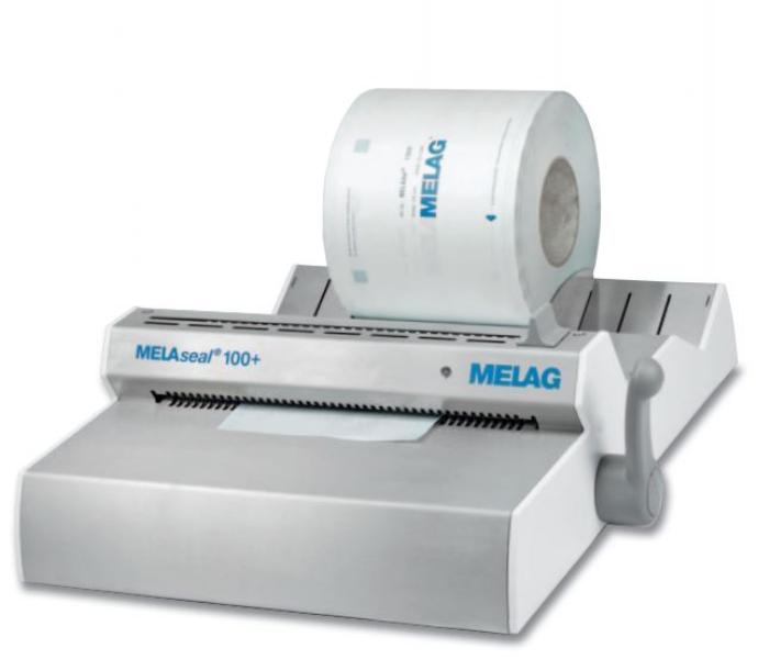 The MELAseal 100+ combines the advantages of its predecessors, the MELAseal 100 and the MELAseal 101 in a single device. Efficiency, reliability and ease of use. After a brief preheating time of about 2 minutes, the foils can be sealed without a pause and with a width of sealing seam of 10 mm (EN 868-5 requires a minimum width of only 6 mm). The new electronics tests the sealing time and the sealing temperature, while an optical and acoustic signal is made if there is a deviation. The infinitely variable thermostat enables the use of packages from different manufacturers.