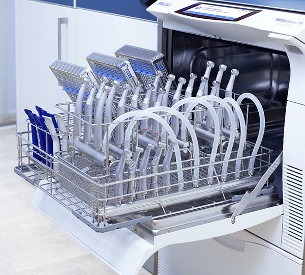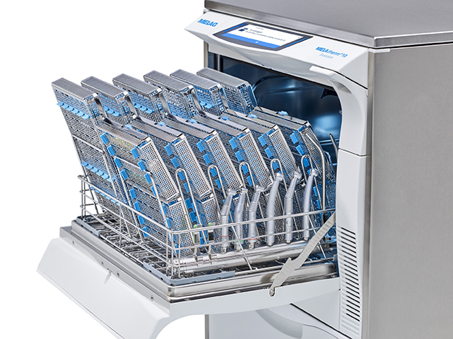 The new AquaBoost technology ensures optimal cleaning outcomes: AquaBoost makes for double rinsing pressure and up to 44 % better cleaning results. The increased pressure permits the decontamination of even more instruments. The reprocessing of 23 handpieces and instruments for up to 40 patients in only 60 minutes is possible only with AquaBoost. Over 80 different baskets and accessories are available to adapt the practice-optimized washing chamber to all your needs - whatever the size and specialization of your practice and clinic is.