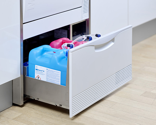 - Integrated Process Agents and Metering Module: The integration of process agents saves valuable space in the decontamination room and helps to avoid errors.