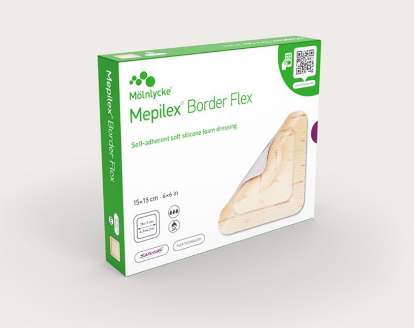 Mepilex Border Flex kan brukes til å behandle en rekke væskende kroniske og akutte sår som diabetiske fotsår, venøse leggsår, trykksår, hudflenger og traumatiske sår. Bandasjen finnes i åtte størrelser, både kvadratiske og rektangulære, som kan brukes på en rekke ulike sår som ditt førstevalg innen alt-i-ett bandasjer.