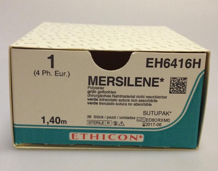 Sutur: Ikke-resorberbar sutur, grønnfarget, 250cm.