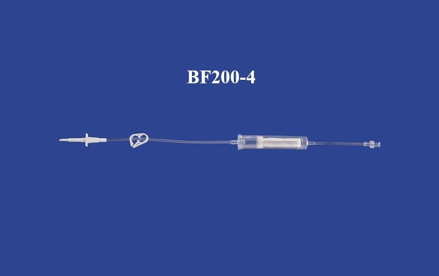 - Set includes non-vented spike, tubing, pinch clamp, 200 micron blood filter and female luer lock