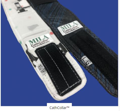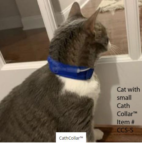 • Clinic collar is solid blue in color (Item #CCS).  CathCollar™ for home use is a printed pattern (Item #CCP).  Pattern subject to change.