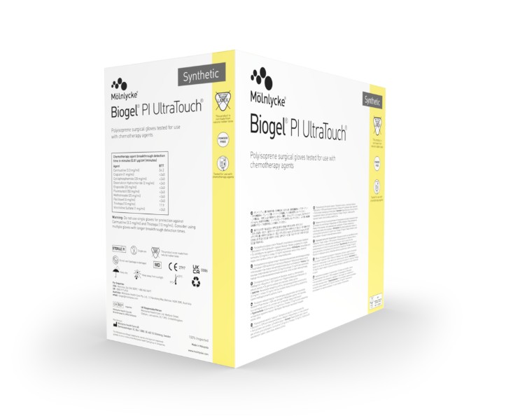 Biogel® PI UltraTouch® er en stråfarget syntetisk operasjonshanske i polyisopren. Det er en universalhanske som tilbyr utmerket barrierebeskyttelse, passform, komfort og fingerfølsomhet4 . Testet og godkjent for bruk ved kjemoterapeutiske midler**.