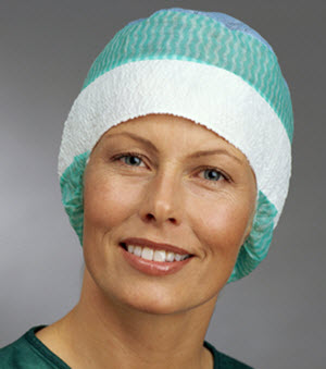 Operasjonslue m/svettebånd, one-size (elastisk), grønn/hvit