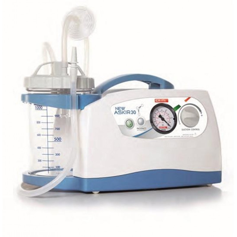 New Askir 30 Proximity is suitable for nasal, oral and endotracheal aspiration of bodily fluids (mucur or catarrah) from adults and children. Indicated for tracheotomized patients, surgical applications and post-operative therapy. New Askir 30 Proximity finds application in out-patient care and in-patient care, elderly care, in private care and at professional level due to its powerful suction capacity of 40 l/min. The Proximity function to switch on and off the device without touch prevents and avoids cross-contamination in-between patients.