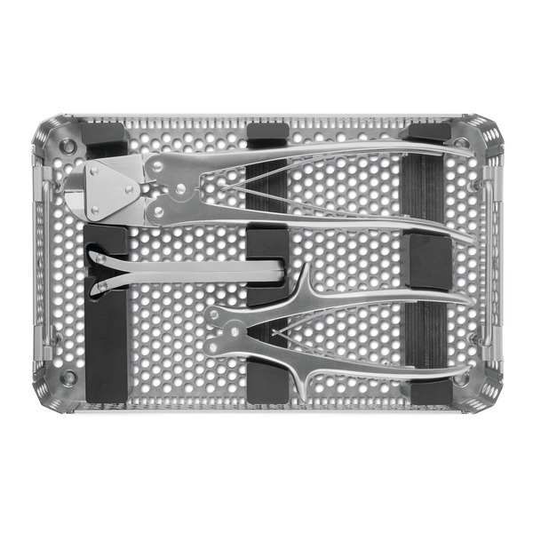 The biologically advantageous Titanium plates are available in three sizes, can be cut to the desired length and be bent in three planes. Specially designed tools are included to perform this. Titanium also reduces artefacts in post-operative imaging.