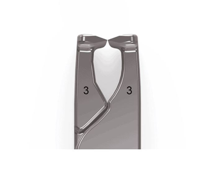 Spreader No. 3 – medium – the 6 mm thickness is used only partially (1/3 – 2/3) for the maxillary cheek teeth and up to full effect for mandibular cheek teeth.