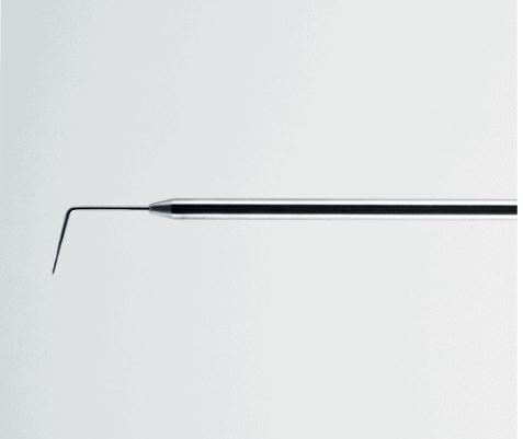 This dental probe was developed for exploring teeth and cleaning interdental spaces. 3 lengths are available – 15, 20 and 30 mm.