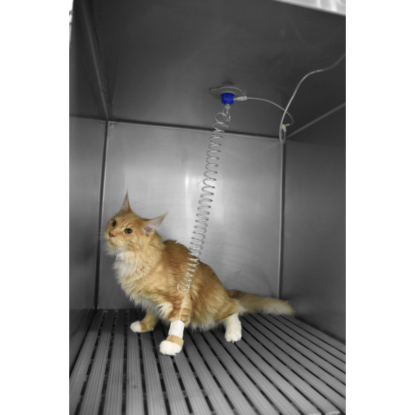 - Den ubegrensede rotasjonen hindrer dyret i å bli viklet inn i infusjonssettet og blokkere væsketilførselen eller kreve en tidkrevende skifte av slangen.