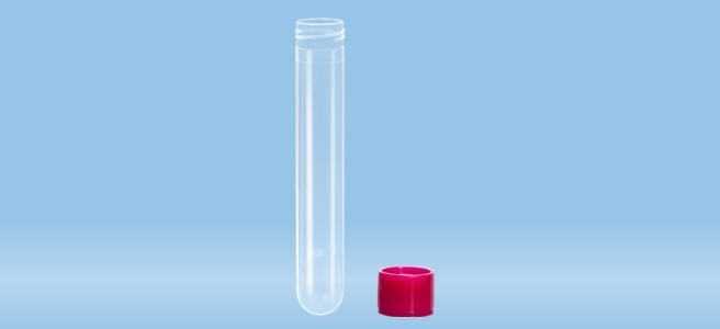Screw cap tube, working volume: 13 ml, (LxØ): 101 x 16.5 mm, material: PP, round base, transparent, screw cap, red, cap enclosed.