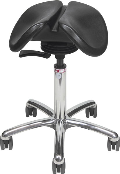 • Ergonomisk setet er i svart polyuretan med et spor i midten