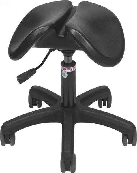 - Ergonomisk setet er i svart polyuretan med et spor i midten