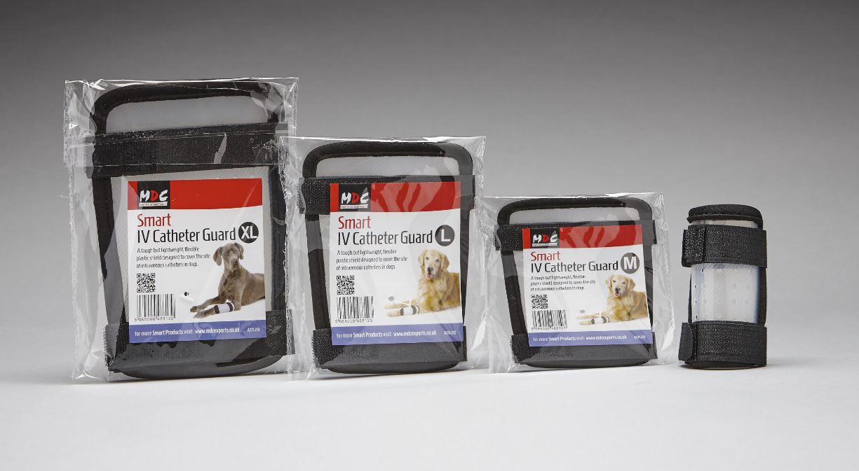 A new and unique product, the Smart IV Catheter Guard™ is a tough but lightweight flexible plastic shield designed to cover the site of intravenous catheters in dogs.