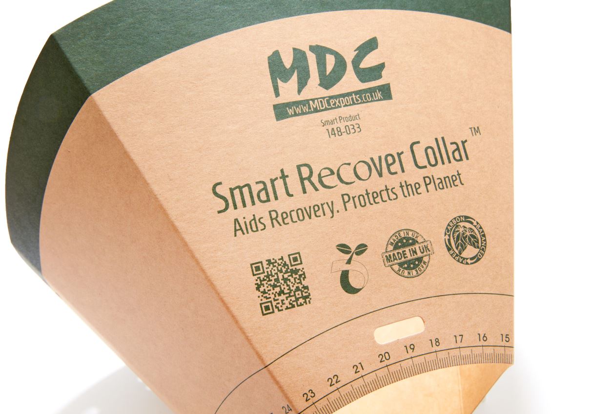 Like you, MDC is concerned for our environment; we want to work more sustainably and help you make a Greener Veterinary Practice. We’ve removed unnecessary and single-use plastics at every opportunity and introduced recycled and recyclable packaging where we can. MDCs’ new and revolutionary ‘Smart Recover Collar’ is another major step forward. It has all of the qualities of our existing Smart Collars – a lightweight and effective barrier to licking at sutures or self-trauma of wounds and is made of flexible (but robust) card allowing the free movement of the patient’s head and neck so that they can walk, eat, drink and sleep in comfort, helping a quick recovery.