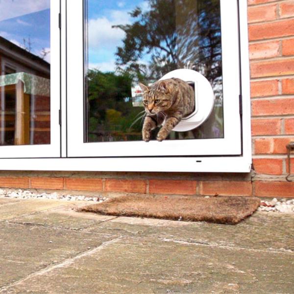 - Sikkerhetsmodus. Katter som kun holdes inne kan komme inn igjen gjennom luken hvis de rømmer ut gjennom et åpent vindu.