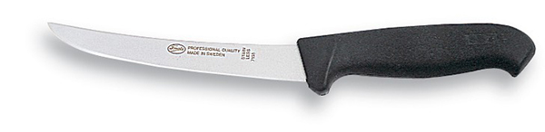 15,8 cm semifleksibel buet blad. Frosts Mora 8158, med sort UG skaft. UG = Unigrip. Dette skaftet er laget av polyamid som føles myk i hånden og gir høy friksjon som ikke påvirkes av fett eller fuktighet. Skaftet har en slitesterk mikrostruktur på overflaten som ligner små krystaller. Unigrip kan anbefales til de fleste bruksområder.