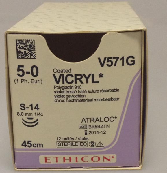 Hjem / Forbruksmateriale / Sutur / Vicryl / Vicryl 5-0 S-14-S-14, spatula nål, 45cm V571G