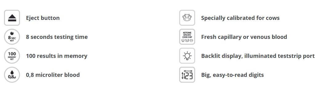 The measurement of the concentration of ketone bodies directly at the animal allows a precise result in only a few seconds in the stable!